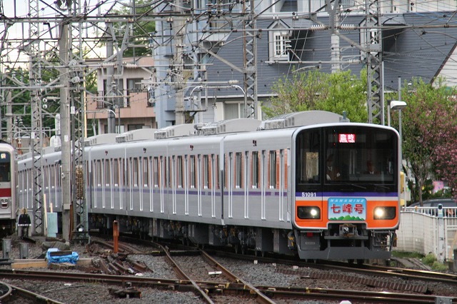 特急を待つ間に通過していった9101F。この編成は副都心線直通対応工事の対象外のため、改正後の現在(2008.7)ほぼ登場時のままの形態で活躍中。これの通過後、私用の準急さんが離脱