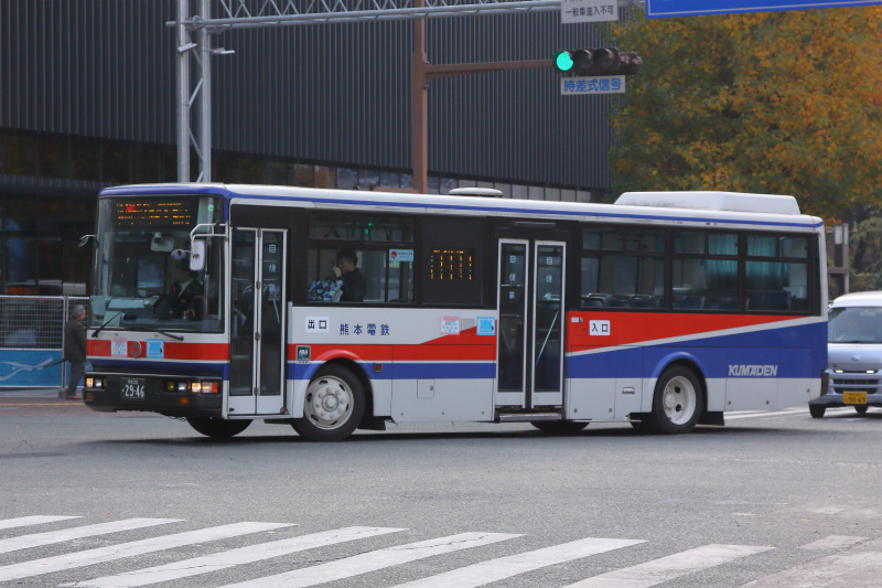 九州産交バスから、一際珍しい車両をご紹介。路線タイプの車体ながら、観光タイプの空連車92MCや02MC等で多く見られるデンソー製の直結式大型クーラーを屋根上に載せ、同社で多数導入された西工製車両の中でも目を引く存在感を持った車両です。床下ビルトイン方式ではなく、屋根上に筐体を載せるタイプの中でもとりわけ珍しい形態で、試作的な要素があったのでしょうか。同年に導入された他の同型車を含め、同形態の車両は導入されませんでした。2021年までに引退しています。 撮影日:2017年2月28日 登録番号:熊本22か3187 メーカー:いすゞ 型式:KC-LV280N 車体:NSK96MC B-I 年式:1997 PR 佐賀県唐津市に本拠を置き、同県や長崎県の広域に路線を展開する昭和自動車。略称は「昭和バス」となります。高速路線バスは福岡県の天神・博多両バスターミナルまで足を延ばします。かつては大阪への夜行バスも存在しましたが、現在は廃止となっています。371号車は1993年式の三菱ふそうエアロバスで、同社内で近距離用の高速車として使用されましたが、2019年春に経年の為廃車となっています。 こちらの車両は移籍導入車ですが、移籍元は現在調査中の為、判明次第加筆・修正を予定しています。 撮影日:2014年11月3日 登録番号:佐賀200か371 メーカー:三菱ふそう 型式:U-MS826P 車体:MFBM 年式:1993 移籍等:不明(調査中)→昭和自動車 追伸:遅ればせながら2021年初の更新となります。コロナ禍により趣味活動も大幅な縮小を強いられてしまいましたが、当面の間は過去に出会った車両を紹介しつつお茶を濁そうと思います。本年もよろしくお願いいたします。 バスが主力の公共交通機関となっている熊本県。中心部の熊本市では比較的早期から低床化への動きがあり、熊本市交通局、九州産交、熊本バス、熊本電気鉄道の4社局共に特徴的なワンステップ低床車が導入されました。熊本電気鉄道では九州地方でおなじみの西日本車体工業(西工)製車体のワンステップバスにリフトを装備するスタイルをセレクト。日産ディーゼルJPの細身なスタイルにグライドスライドの中ドア、リフトが目立ちます。導入時は熊本初の中型ロング車だったそうです。老朽化の為、2017年に廃車となっています。 撮影日:2016年12月9日 登録番号:熊本22か2946 メーカー:日産ディーゼル 型式:U-JP211NTN 車体:NSK 年式:1995 熊本市交通局が前身となる熊本都市バス。車両や路線をほぼそのまま継承され、交通局塗装のままの車両も存在します。3303号車は日野ブルーリボンノンステップで、熊本市交通局時代に3台導入された内の1台です。都市バスへの移籍後に新塗装(現行塗装)へ変更され、暫くは方向幕のままでしたが、後年にLED幕へ換装されています。熊本市内で各社が低床化を進める過程で多くが導入された初期型ノンステップ車ですが、経年などの理由からかなり代替が進みました。 撮影日:2016年12月10日 登録番号:熊本22か3303 メーカー:日野 型式:KC-HU2PMCE 車体:日野車体/ブルーリボン 年式:1999 移籍等:熊本市交通局→熊本都市バス | カテゴリー