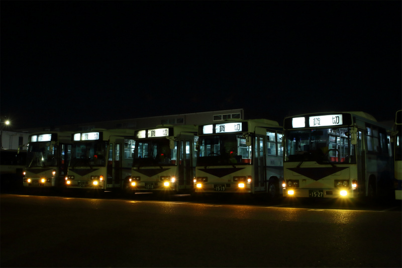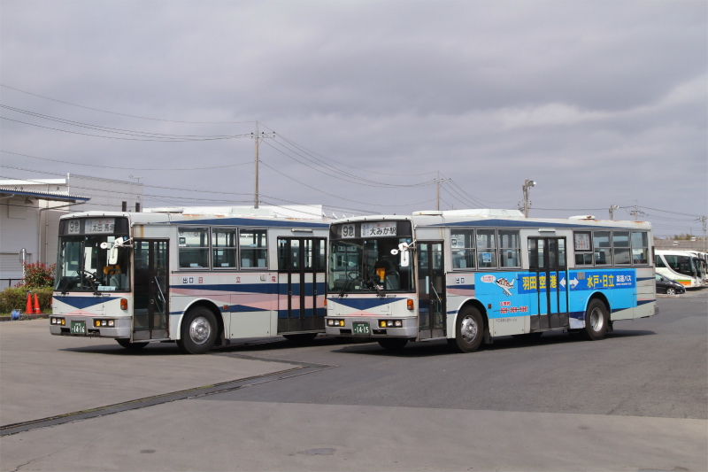 日産ディーゼル製の大型フルフラットノンステップバスの先駆けとなるUA460KAM改。この系統の車両の特徴である、高価格、試作車、特異形状の車体を漏れなく満たしており、横浜市交通局や東京都交通局など一部の公営事業者にのみ導入されました。4大メーカーの内、日産ディーゼル製の試作車となります。正式な型式取得をする前の1997年製造であり、比較的近年まで各社で活躍したKC-UA460KAMとは側窓や屋根回りの見つけが大きく異なります(一部では戦車や装甲車の俗称も)。こちらの車両は横浜市交通局で活躍し、引退後は埼玉県内の学校送迎車に転身。更には成田空港近くの有料駐車場送迎車としても活躍を続け、同型車の試作車としてはかなりの長期(約21年)に渡り稼働した1台です。晩年は整備上ネックとなるような故障が頻発し、修理されず引退しています。 ☆型式取得後のKC-UA460KAMはこちらです(九州産交バス 熊本200か35) 撮影日:2017年7月9日(駐車場敷地内、許可を得て撮影しています) メーカー:日産ディーゼル 型式:UA460KAM改 車体:FHI/R17E 年式:1997 移籍等:横浜市交通局(7-4504)→埼玉県内学校送迎車(自家用)→有料駐車場送迎車(自家用) ※当車両は自家用登録車です。検索エンジン等の対策のため記事情報に登録番号を記載していません。車両の動向についての問い合わせ等は、所有団体様、オーナー様等にご迷惑をお掛けする原因となりますのでお止め下さい。 茨城県北部に路線を展開していた日立電鉄交通サービス。現在は茨城交通へ統合されましたが、塗装はそのままとなっています。同社では日産ディーゼルシャーシ、富士重工8E車体の導入が少なく、いすゞLR系の方が多く導入されました。富士重工8E車体として見ると8台が存在しています(移籍車含まず)。経年代替が進み、晩年は1511号車のみが残り、2019年5月には茨城交通へと引き継がれましたが、あまり活躍する機会はなく同年6月下旬に引退、廃車となりました。これにより日立電鉄から引き継がれたU-RM系車両は全廃となりました。 撮影日:2018年6月17日(日立南営業所構内、貸切乗車会時に撮影) 登録番号:水戸22あ1511 メーカー:日産ディーゼル 型式:U-RM210GSN 車体:FHI/R18E 年式:1992 移籍等:日立電鉄バス→日立電鉄交通サービス 福島県双葉郡に拠点を置く浜通り交通。路線バス事業ではなく、観光バスに特化した事業者です。東日本大震災で同社を取り巻く環境は一変。福島第一原子力発電所の事故を受け設定された警戒区域内から撤退することを余儀なくされ、いわき市内四ツ倉駅近くの復興団地エリアに拠点を移し、現在に至るまで復旧作業員の送迎輸送を主に手掛けています。2014年頃からは常磐線の不通区間の復旧が進み、代行バスの業務も受託する事となり、ジェイアールバス関東から塗装を変更しないいすゞガーラ2台が移籍。専用車として活躍しました。やはり繋ぎ的な用途だったのか、2年程度で後継車に代替された様です。2020年3月の常磐線全線復旧により同社の代行バスも終了となりましたが、地域密着型の観光バスを手掛ける同社が少しでも多くの方に認知されるきっかけとなったのではないでしょうか。 (2020.4.4加筆修正) 撮影日:2015年2月15日 登録番号:いわき200か572 メーカー:いすゞ 型式:KC-LV718R 車体:IBM/ガーラ 年式:2000 移籍等:ジェイアールバス関東(H651-00405)→浜通り交通 1991年、日立電鉄バス時代に導入された日産ディーゼルUA、富士重工7E車体架装車。6台が導入されました。2019年現在では2台にまで減少してしまい、平日を中心に運行を続けていました。日立電鉄バス時代の旧塗装を纏い、また車内が輸送力を重視した電車の座席の様なオールロングシートも相俟って非常に特徴的です。茨城交通との統合後も活躍を続けましたが、2019年10月下旬に引退。相方1415号車の方も先が長くないかと思います。 (2019.10.21加筆修正) 撮影日:2019年4月7日(日立電鉄交通サービス日立南営業所構内、貸切乗車会時に撮影) 登録番号:,水戸22あ1416 メーカー:日産ディーゼル 型式:U-UA440LSN 車体:FHI/R17E 年式:1991 移籍等:日立電鉄バス→日立電鉄交通サービス ◇番外編◆ 統合前、古めかしさを残す日立電鉄交通サービスの車両達をサムネイルで掲載します。クリックで拡大します。 | カテゴリー