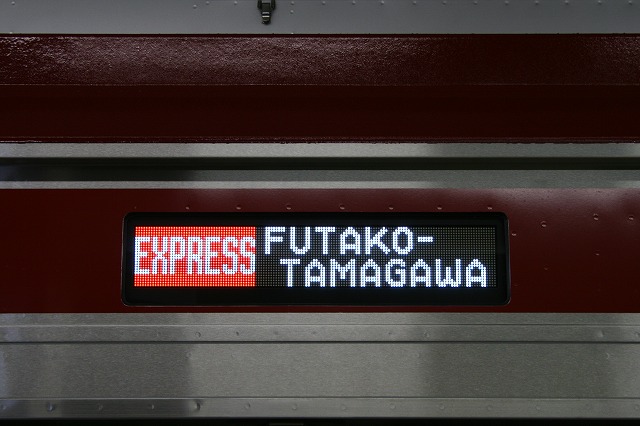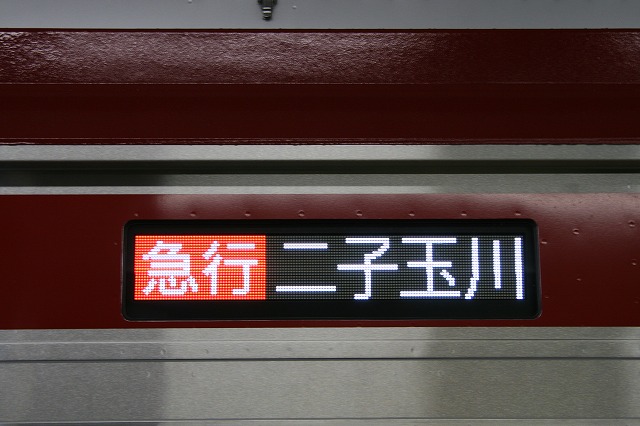 6000系側面行先表示器(フルカラーLED)に表示されている「急行二子玉川行き」。5050系・2000系・新7000系や8500系・5000系の一部、最近交換が進んでいる8090系等と同タイプの物です。