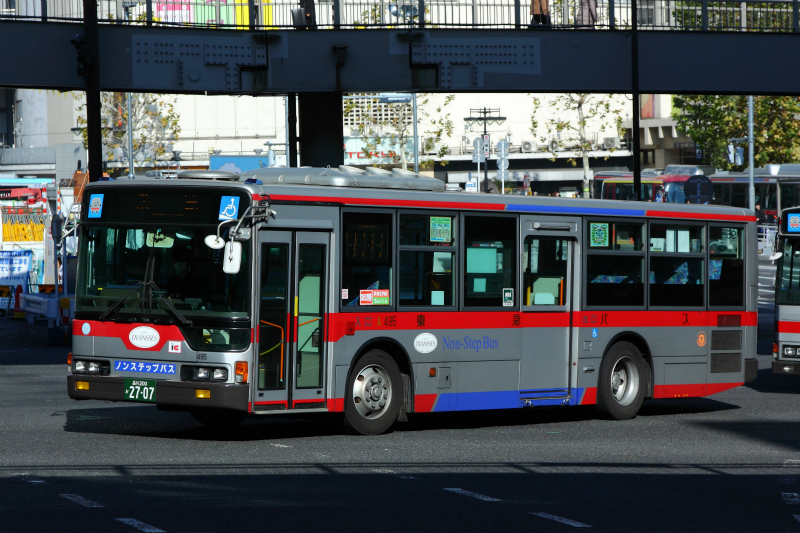 東急バス トランセ淡島営業所所属 A495 品川200か27-07 三菱ふそうKL-MP37JK MFBM/2003 三菱ふそう・ニューエアロスターノンステップバス。現在でも年式は違えど外観上は近い車両が多いタイプになりますが、KL-規制で導入された車両は、かつてそれなりの勢力を誇っていた型式で、2001年から2003年までの間に導入され、最盛期には総勢約40台の同型車が在籍していました。495号車と496号車の2台は転属が重なり、横浜ナンバー、川崎ナンバー、品川ナンバーと変更を繰り返し、世田谷ナンバーを除けば全ての営業エリアのナンバーを取得していた事になります。現在では495号車も含め、全車引退しています。 撮影日:2016年1月15日 PR | カテゴリー