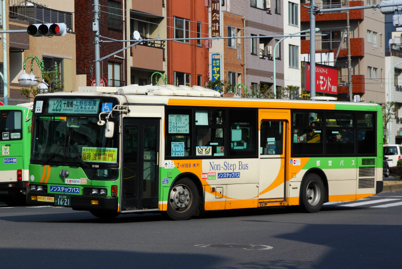 東京都交通局 南千住自動車営業所青戸支所所属 Z-H169 足立200か16-21 KL-MP37JK 三菱ふそう MFBM/2001 東京都交通局に導入された三菱ふそうエアロスター・ノンステップ。KL-MP37JKとしては2001年のH代車が初の導入となり、2003年のL代まで総勢100台近くが導入されました。その内、H代車は32台です。当初は方向幕装備で導入され、K代車やL代車は後年、方向幕がLED式に改造されていますが、このH代は改造されず、現在東京都交通局としては最後の方向幕装備車となっています。営業所によっては、都0*系統や深夜バス系統などに充当される機会もあり、運行日は撮影される方を多く見かけます。2016年秋頃から、最新鋭となるB代車への代替が進められており、「最後の方向幕装備車」が見られなくなる日も遠くなさそうです。 撮影日:2016年2月28日 PR | カテゴリー