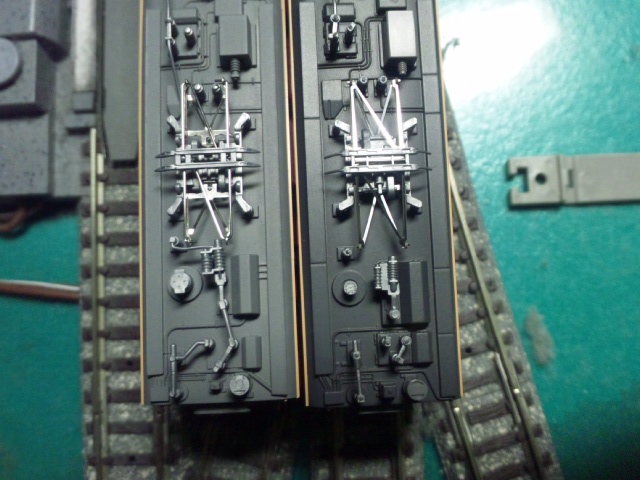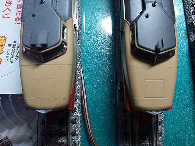 両者とも実車同様EF63等の連結を考慮し、KATOがナックルカプラー、TOMIXがTNカプラー密自連を装備しています。解放テコはTOMIXの方が繊細かつリアルですが、取り扱いに注意が必要です。ライトに関してはKATOが黄色みを帯びていて、TOMIXが白色度の高い表現です。KATOは列車無線アンテナ表現が標準でありますが、TOMIXは付属の治具を用いて0.5mmピンバイスで穴を開けて取り付けます。