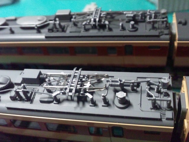 両者とも既製品の485系と同じ屋根上です。TOMIXはHG製品で手慣れている表現で、流石と言ったところです。