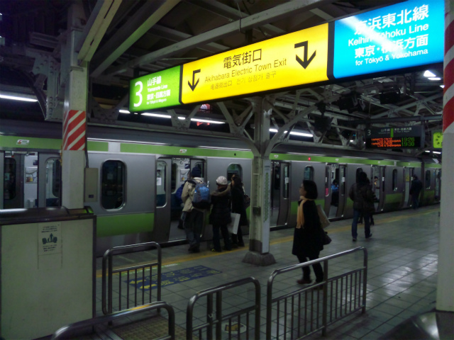 秋葉原外回りホームにて。電気街口の案内板との組み合わせ