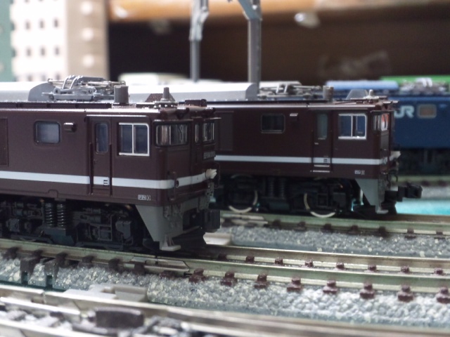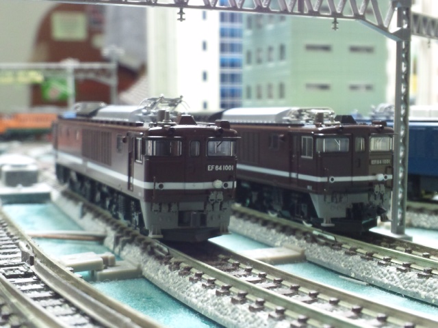 以上になります。個人的には後発のTOMIX製品がおすすめかな・・と思います。ナンバープレートの文字の大きさについては各個人の主観もあろうかと思いますが、個人的にちょうどいいと言った大きさではないと思います。KATO製品はやはり基本設計が古いものですので、突っ込みどころは多いと思いますがまだまだ現役でやっていけるレベルだと思います。EF64全般に関し、「馬面印象」があると言われますが、やはりその点は否めないようです。TOMIXの今後のラインナップ展開にも期待できますが、これがEF65各種の時のような「どんでん返し現象」を呼ぶのでしょうか。今後も目が離せません。