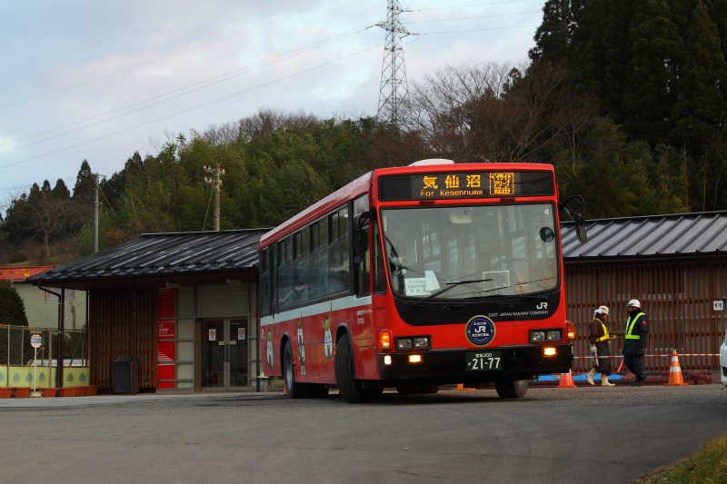 本吉駅を発車するキュービック。元川崎市営です。