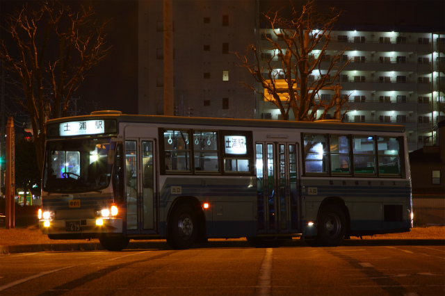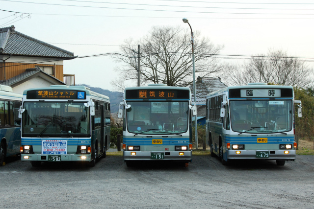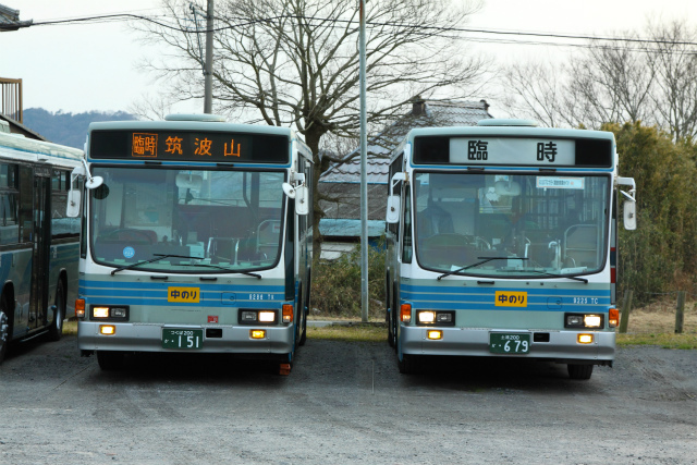 こん○○は。特に狙っていた訳ではないんですが時間ができたので前回の続きを・・・ 9225TC乗車会その5です。筑波山口へ到着後、一旦バスを回して頂き・・・ 結構無理矢理ですが、筑波山口感を出してみました。 筑波山口に停車中です。この後つくば北営業所(車庫)へ向かい・・・こちらでも数台の撮影の許可を頂きました。 1921TKや9379TK、9286TK、貸切車最古参格の1706TKと顔を並べました。 関東鉄道 9286TK U-LV324L IK/1995(元京成バスN119) 京成時代は長沼の所属、9286TK 京成移籍車3並びと言うことで、筑波山に関係する何かの表示で設定して頂きました。 左から9379TK、9286TK、9225TCの順です。 ツーステップのLED車と方向幕車が顔を揃える機会はあまりないかも知れません 関東鉄道 9379TK KL-LV380L1 IBM/2001(元京成バス2225) 9379TK。主催者談では9225TCと同じ金町に配置実績があるものの、新製配置が市川で、引退前の短期間に金町へ移籍したため顔を合わせる機会は無かったそうです。ハイビーム状態です 筑波山と、金町の車両と。9379の京成車番は2225・・・何かの縁を感じますね(笑 ここでつくば北営業所での撮影は終了、予定外の時間にも関わらず、快く対応して下さった営業所の方、この場をお借りして御礼申し上げます。 数回登場しているこの場所で、筑波山シャトル風にアレンジしてフォトラン走行しました 最後は高架道を通り、終点へ到着します。 土浦駅東口、終点に到着です。ここで少しの間夜間の撮影を行います ラストカットはこの1枚。この後皆さんで車内点検をし、解散となりました。 本日1日安全運転をして下さった関鉄観光土浦営業所のB運転士様、貸切企画を快諾して下さった各営業所の皆様、おかげさまで大きなトラブルもなく無事に終える事が出来ました。この場をお借りして御礼申し上げます。 長いようで短い1日でしたが、主催のA様、参加された全ての皆様、お疲れ様でした。今回は装飾品など担当の副主催と言う事でやって参りました。次回は久々に自身で何か企画しようかな・・・と思いつつ、記事のまとめとします。ここまでお読み頂きありがとうございました。 PR | カテゴリー