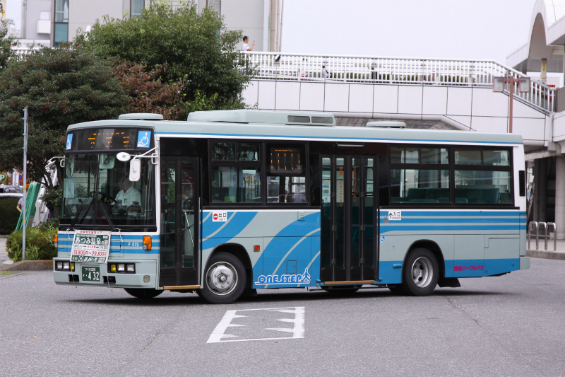2013年頃、京成グループのちばシティバスから関鉄パープルバスに移籍したいすゞジャーニーKワンステップ。富士重工8E車体を架装しています。同年に京成バスより関鉄グループの関鉄グリーンバスに2台移籍した同型車のG062、G063とは側面窓廻りの塗装が異なり、側面行先表示器の設置位置も異なっています。1台のみの在籍ですが、管内の広範囲で活躍しています。