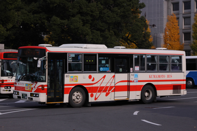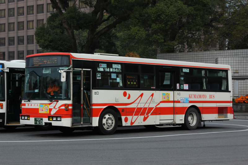 熊本都市バス 熊本22か27-19 日野 U-HT2MMAA/西工58MC B-II 日野・西日本車体工業/1992(元熊本市交通局) 熊本都市バスに在籍する日野ブルーリボンU-HT。熊本市交通局からの移籍車で、塗装もそのまま使われています。九州ではお馴染みの西工58MC車体を架装しており、熊本都市バスには同様の塗装でいすゞ、三菱ふそう、日産ディーゼルの4メーカー全ての車種が存在し、現在も活躍しています。メーカーの見分け方としては非公式側パネルのメッシュ配置で見極めるのが無難なところでしょうか。公式側ではかなり難易度が高くなりますが・・・いすゞ以外の3メーカーはメッシュが無いので、公式側後部にメッシュがあればいすゞ製、と言った具合に判別ができます。 撮影日:2016年12月9日 | カテゴリー