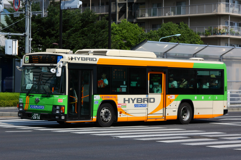 関東鉄道 土浦営業所所属 9380TC 土浦200か13-73 日野 KL-HU2PPEE 日野車体/2002 2014年、京成バスより関東鉄道に移籍した日野ブルーリボンシティ・ノンステップKL-HU。エンジン縦置きのフルフラットノンステップバスとしては比較的後期の車両で、関東圏では東急バスや京成バス、そのグループ各社に見られましたが、数はそれほど多くはありませんでした。関東鉄道には2014年に9380TCが配置された後、翌年2015年に再び京成バスから9400TCが移籍。2台共同一型式、同一営業所へ配置されていますが、屋根肩部の塗り分けなどが異なり、違いを楽しむ事ができます。車両の特性上、関東圏への移籍例は少ないのですが、貴重な移籍とも言える関東鉄道では末永く活躍できる事を期待します。 撮影日:2014年8月24日 東京都交通局 南千住自動車営業所所属 K-X296 足立200か26-16 いすゞ QQG-LV234L3 J-BUS/2012 2012年、東京都交通局に8台が導入されたいすゞエルガ・ハイブリッドQQG-LV。前中扉間に大きく「HYBRID」のロゴが入り、存在感をアピールしています。非公式側最後部の座席はバッテリースペースのため、通常のエルガに比べ1席減少しています。走行性と操作性に独特のものがあり、主要路線で活躍・・・とはなかなか行かないようで、深川営業所(S)に導入された4台以外はナンバーの変更登録が絡む転属が行われています。近隣の東急バスなどでは継続して導入されていますが、東京都交通局では2012年のX代以降導入されていません。現在も活躍しています。 撮影日:2015年8月15日 東京空港交通 594-20542R5 品川200か11-15 日産ディーゼル KL-RA552RBN 富士重工1M(R21M) FHI/2002 白ベースにオレンジのパターンカラーが印象的な通称:リムジンバス。関東で一度は見かけた事のある塗装ではないでしょうか。正式名称は東京空港交通で、いすゞ以外の主要3メーカーの様々な車種を導入しています。日産ディーゼルスペースアローKL-RAに富士重工1Mという組み合わせの車両は、かつてかなりの台数が導入された輸入車のユーロツアーの生産終了に代わるような形で、2000~2002年まで一定数導入されました。その後は富士重工業の製造撤退に伴い、西工ボディへと変化しています。現在では古参格車両となっており、徐々に引退が進んでいます。 撮影日:2016年9月10日 | カテゴリー