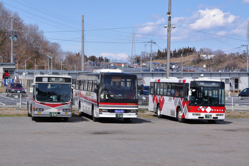 リムジン仕様となる屋根上直結クーラー、3本トランクのいすゞスーパークルーザーKC-LV(後期型)。常磐交通時代の1996年、同社のいわき~成田空港間高速バス運行開始に合わせ567・568・569の3台が導入されました。仕様上ほぼ専用として使われる事を基本としていましたが、看板路線でもあるいわき号にも度々充当され、東京駅でもその姿を見かける事がありました。晩年は古参車と言う事もあり、画像のように郡山・会津若松や福島駅などの県内のみで完結する路線への充当が主体となっていました。